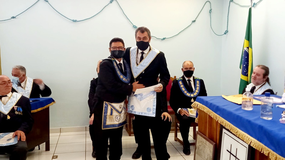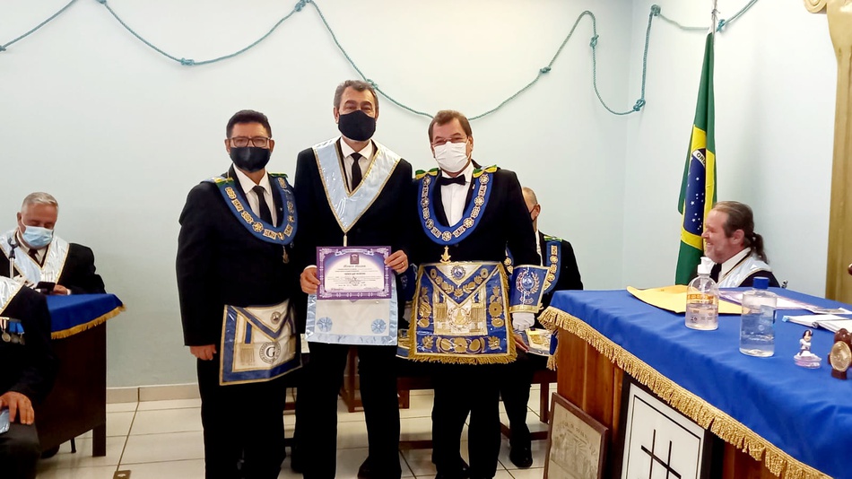 Na oportunidade, foram entregues os diplomas de Mestre Maçom aos irmãos Luciano Moreira dos Santos e Helder Luiz Martins, pelo Venerável Mestre (servindo) Guilherme Augusto Soares Morales.